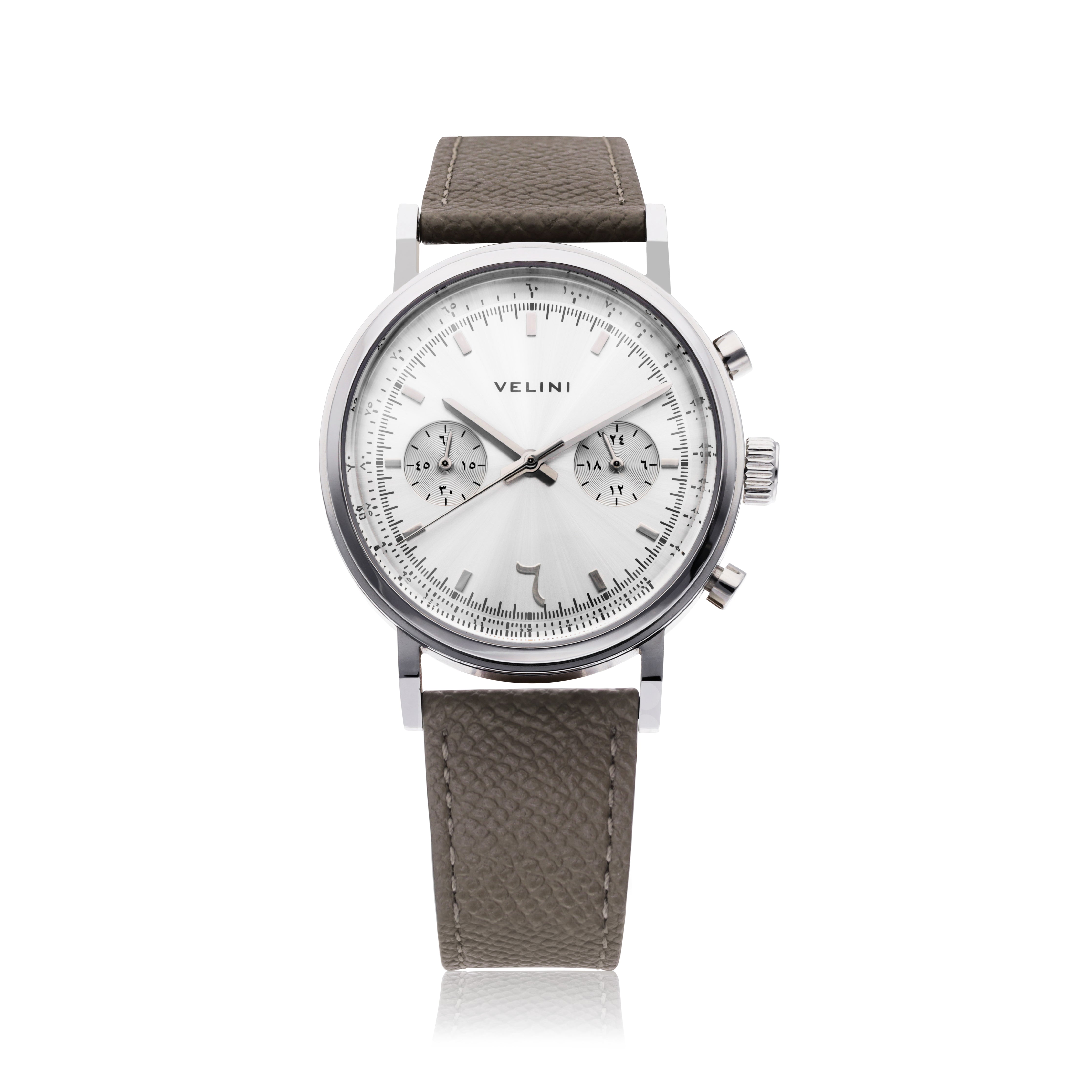 In the same way, the Parc Fermé chronograph marks the third stage in Velini’s journey. It reflects a new level of maturity and refinement — bold in design, precise in function, and crafted to capture decisive moments. Featuring a 37.5mm stainless-steel case, domed sapphire crystal, the Seiko VK64 meca-quartz movement, and refined finishing, the Parc Fermé stands as a symbol of control and anticipation, where every second counts.